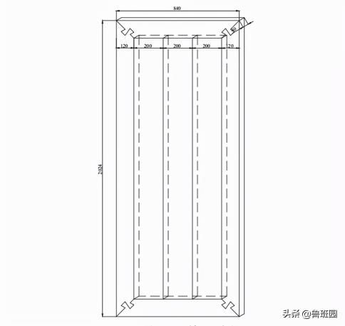 左右冒挺的寬度為120mm、厚度為40mm,在冒挺高低兩頭4mm處各開1個厚度為7mm、深度為15mm的凹槽以擺放長1784 mm、寬30mm、厚7mm的木板條。芯板長度為1784mm、寬度為200mm、厚度為15mm,芯板在距離高低兩頭4mm處各開1個厚度為7 mm、深度為15 mm的凹槽以擺放長1784 mm、寬30 mm、厚7 mm的木板條,如下圖所示。